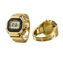 【新品】时尚潮流 金色+银色戒指手表套组CRW-001
